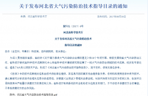 園區企業河北唯沃入選《河北省大氣污染防治技術指導目錄》